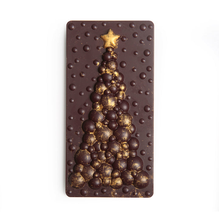 Tavoletta a tema Albero di Natale ai tre cioccolati: Extra Fondente, al Latte e Bianco